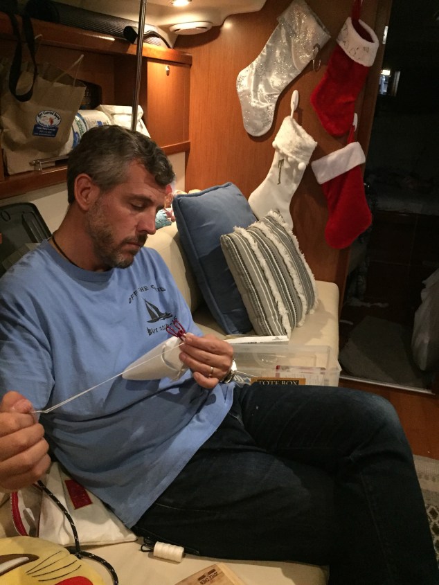 The normal activities took place after we got back, the last Advent calendar door was opened and read, cookies and egg nog were set out for Santa, and the carrots were left for the reindeer. A special added touch that night….a 2AM wake up call from Savy saying she was going to throw-up… Yes, the stomach bug can even find you on a boat. But Santa persisted, none-the-less, and Christmas morning on our floating home was a special event.